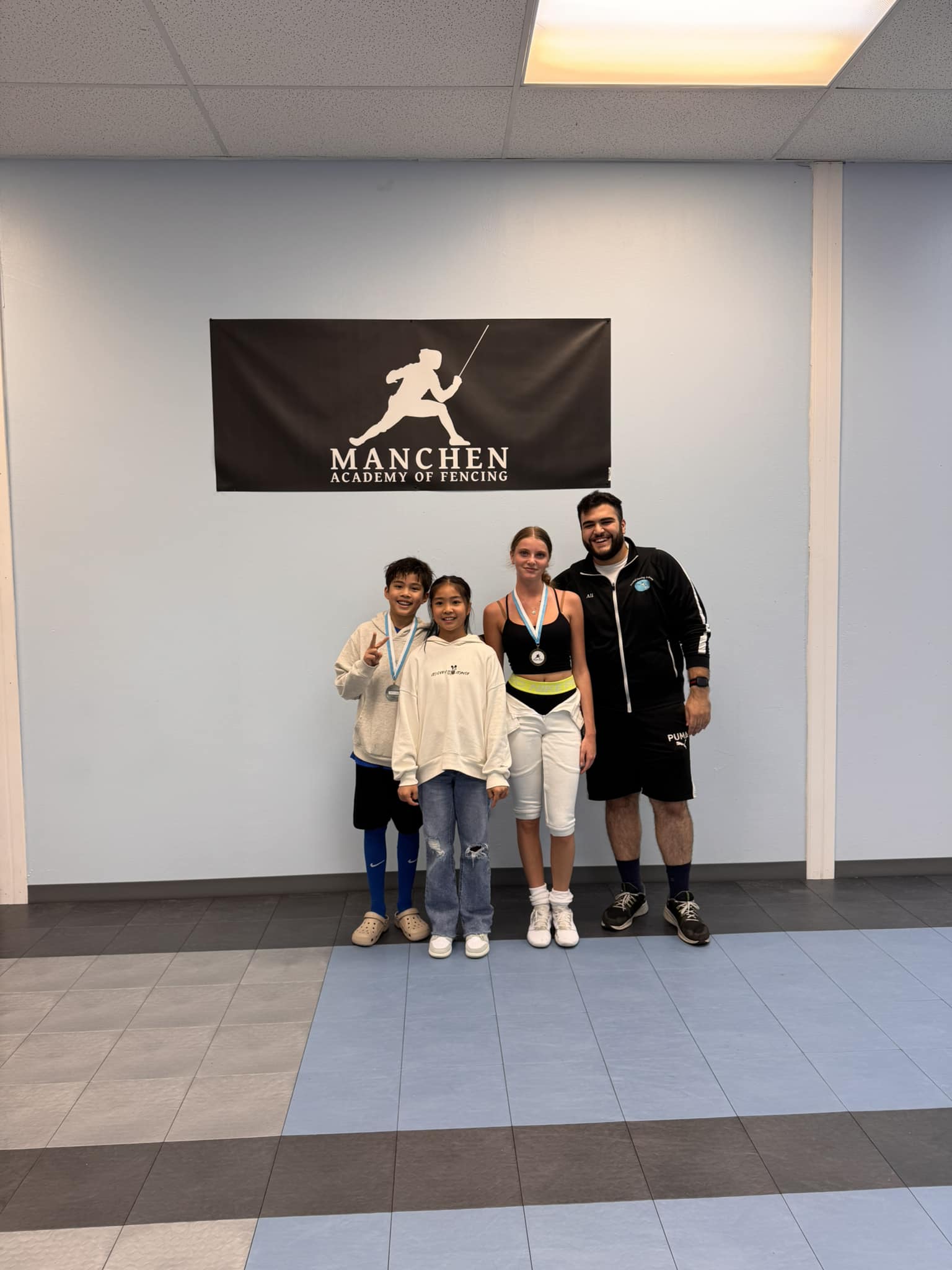 Congrats to our fencers Alexis, John, and David on their performance at the Manchen Unrated Foil event last weekend. Alexis placed 1st out of 15 fencers in the Women’s event to earn her E24 rating! Alexis went 3-1 in the pools and won four elimination bouts, including 15-12 in the final to earn her rating.